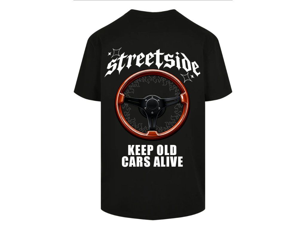 Oversized Streetside T-shirt with small text in front and main text on the back
